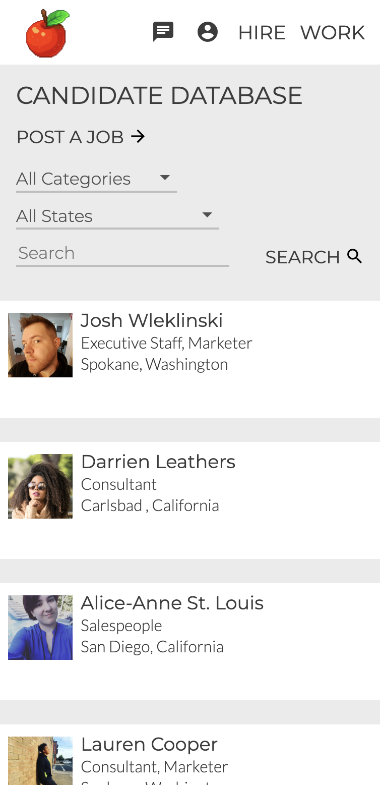 Designed to connect fully certified talent with companies in a niche market. It features a responsive user interface, load balanced Node.js web server, hand coded backend security and database.